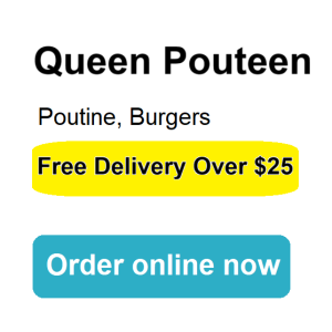 | Queen Pouteen Poutine, Burgers Free Delivery Over $25 | Open for delivery: Wed-Thurs: 11AM-7PM Fri-Sat: 11AM-8PM Sun: 11AM-7PM |